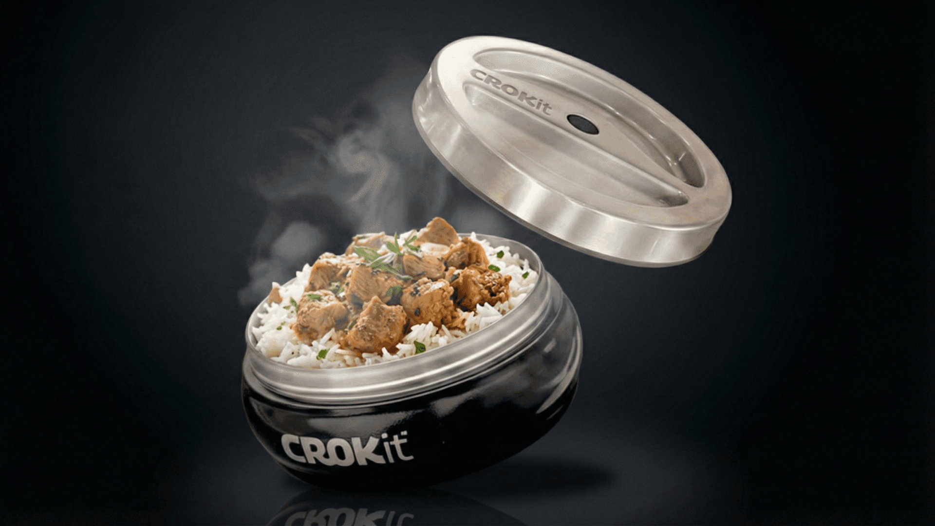 CROKit is a compact, thermal food bowl that keeps meals hot or cold on the go, using leak-proof, copper-lined, FDA-approved construction for convenient, mess-free eating anywhere.