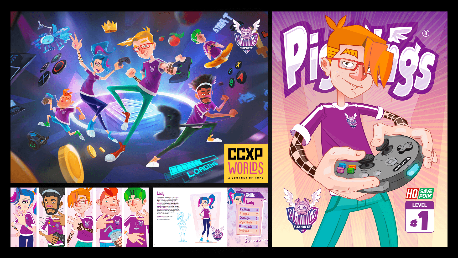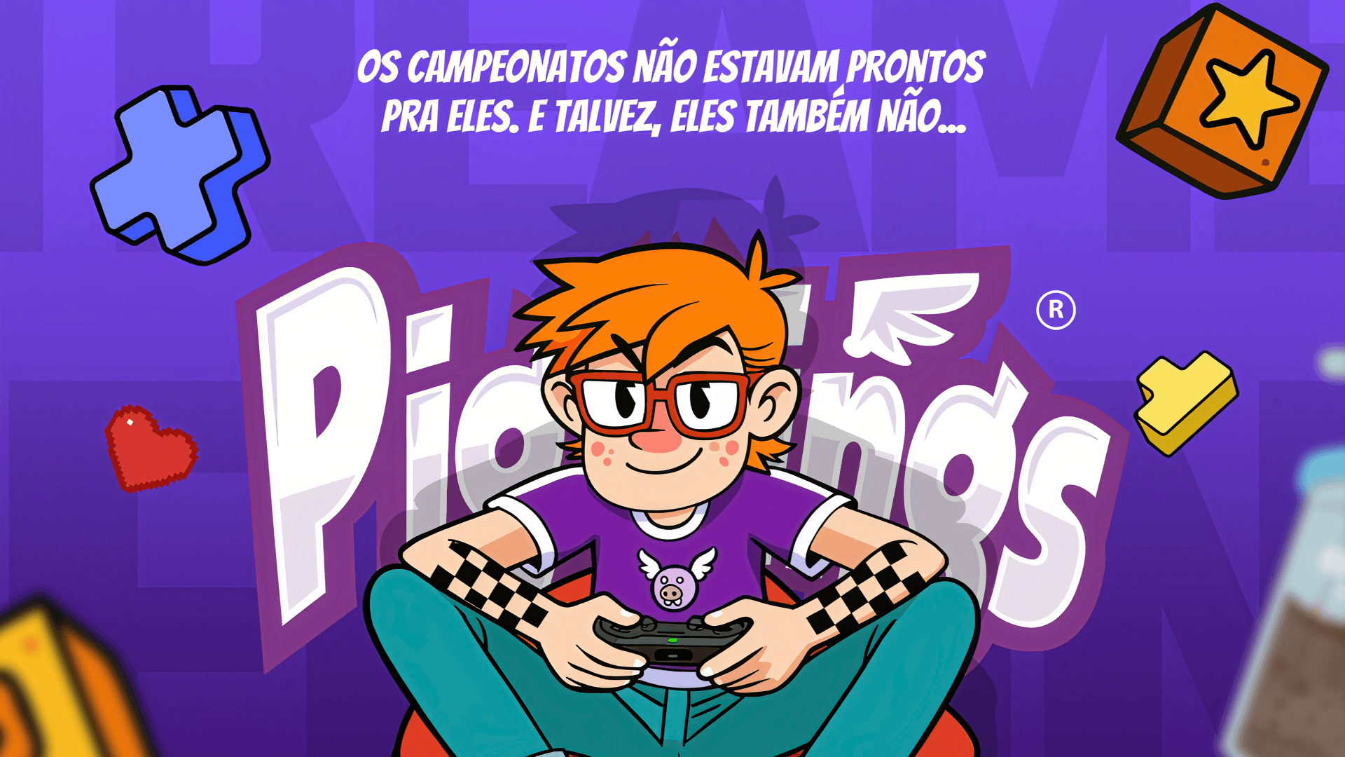 PigWings is a Brazilian indie comic (HQ) about the most adorably disastrous e-sports team you’ll ever meet. The story follows a group of young, sponsorless “noobs” who dream of becoming pro players, facing tournament “bosses” and life’s tough stages with humor, nostalgia, and genuine love for games. Mixing references to classic and modern videogames, the comic celebrates underdogs who keep hitting respawn, not for fame or trophies, but because playing is who they are.